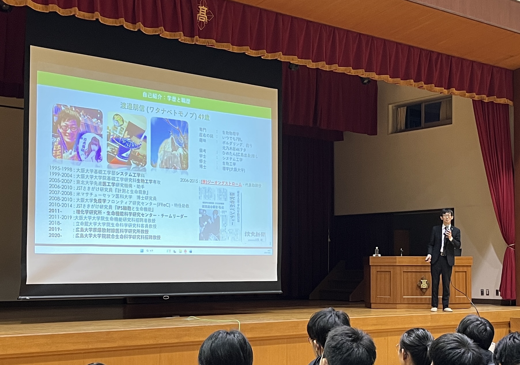 12月3日(水)に、理化学研究所生命機能科学研究センターの渡邉朋信先生を講師にお招きし、「研究で幸せになる」のテーマでSSH講演会を開催しました。