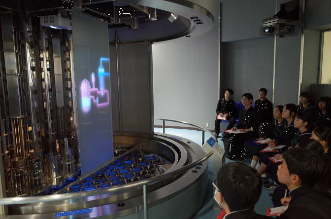 1階と2階にわかれて見学をしました。1階では美浜原子力発電所の施設や発電方法について説明いただきました。原子炉体験シアターでは実物模型や映像により、原子炉の中にいるような感覚を体験しました。また福島第一原子力発電所の事故と対比させ、安全性を高める取り組みをしていることも説明いただきました。