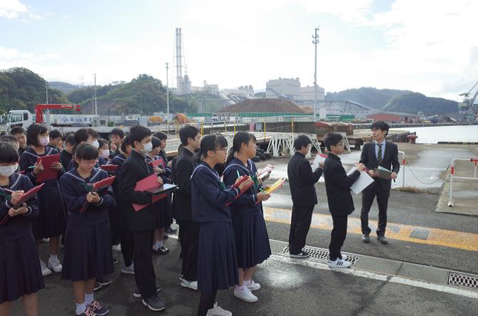 また火力発電所で使用する石炭を備蓄している様子も(バスの中から)見学しました。石炭は主にオーストラリアから船舶にて運搬されていることに興味を抱いた様子でした。