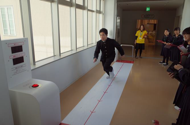 5mの距離を走り、走る速度と体重から、自分の運動エネルギーを測定しました。事前の予想より、体重や速度が測定される数値に大きく関わっていることに驚いていました。