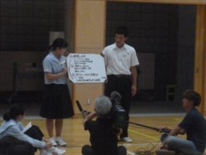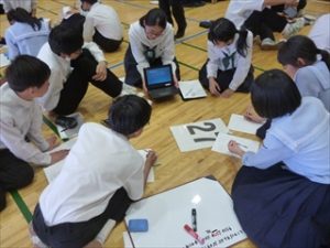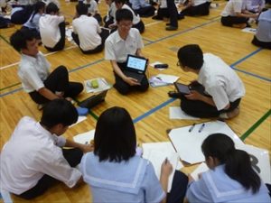 その後、「これからの福井」について、「職業と人工知能(AI)」や「少子高齢化」などのテーマに基づき、その解決策を話し合いました。生徒からは、「将来、人工知能が多くの仕事を代替するようになるので、人間らしいコミュニケーション能力を身に付けることが必要」、「農林水産業や伝統工業など、福井の魅力を県内外や外国人に向けて発信していくことが重要」などの意見が出ていました。