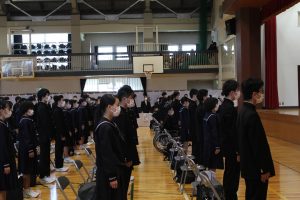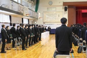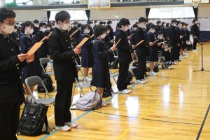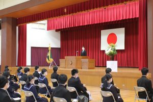 椅子の間隔を広げる、常時換気、式次第の簡略化、出席者を絞り込む等、感染防止対策に配慮しての式となりましたが、天候にも恵まれ、新入生の入学をお祝いすることができました。