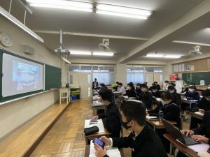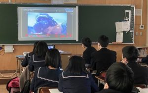 12月7日(月)に、東京大学大学院情報理工学系研究科の鳴海拓志先生を講師に、「バーチャルリアリティでデザインする未来の自分と社会」のテーマでSSH講演会を開催しました。初めてのオンライン開催となり、生徒は各教室で視聴しました。自分のスマートフォンで講師の先生とリアルタイムでつながり、コメント等のリアクションを先生に送るなどして、アクティブに講演に参加しました。バーチャルリアリティ分野の最先端の研究内容や将来性などについて、様々な実例を見ながら学ぶことができました。