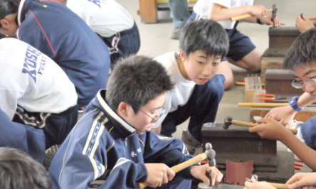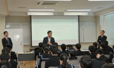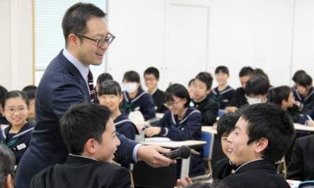 県内を代表する企業で活躍している方々からお話を伺うことで、福井の産業や働くことについての意義を学びます。また、中学2年次には、県内の企業、研究機関、行政機関等での3日間程度のインターンシップを通して地元企業と海外のつながりや地元企業の優れた「技」を体感します。